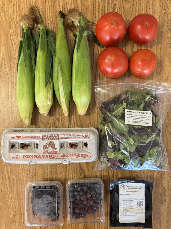 “We really had our hearts and our bellies full, thanks to our sponsor, our community partners, our farmers, our volunteers and our families. The conversation, education and unity in Person County were amazing,” says Erin Redfern, STEAM teacher at South Elementary School. “Families walked away with a box of awesome tomatoes, corn, eggs, berries, mixed salad greens and hamburger. Eat healthy. Eat well!”