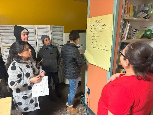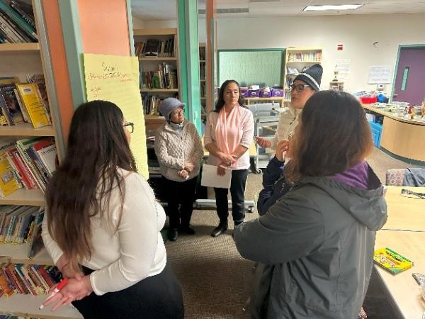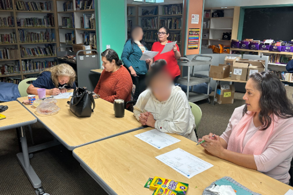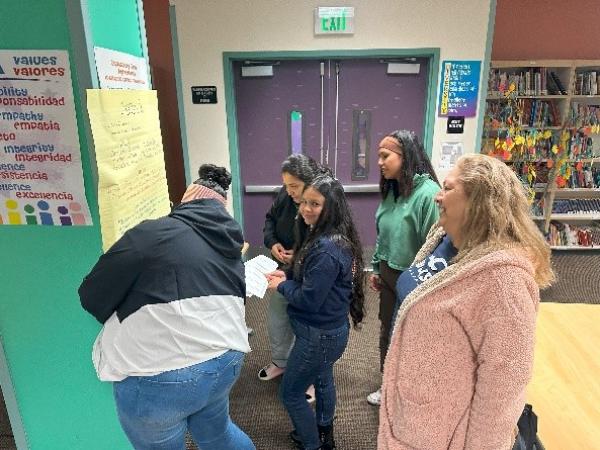 At the in-person culminating event, family members came together to reflect on what they learned and share resources and wellness strategies from their own lives. “They definitely like when somebody's in front of them, facilitating teaching them, and then I think that they also really appreciate being able to, like kind of own their learning.” In small groups of people from multiple school sites, they wrote down their learnings from each session, putting the lessons into their own words for others to learn. Together they completed and discussed Kohl’s Healthy at Home activities such as the Family Vision Board | Tablero de visión de la familia to use at home and the Student Vision Board | Tablero de visión del estudiante to use at school. The space was filled with energy as families reunited in person.