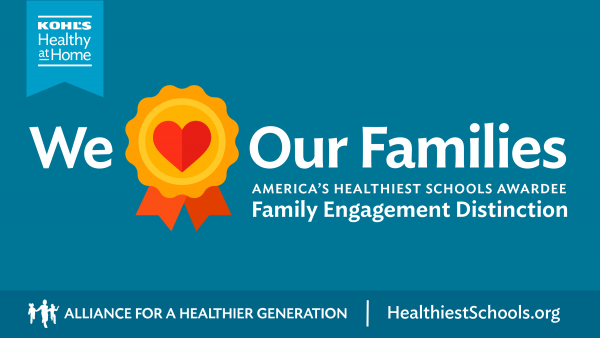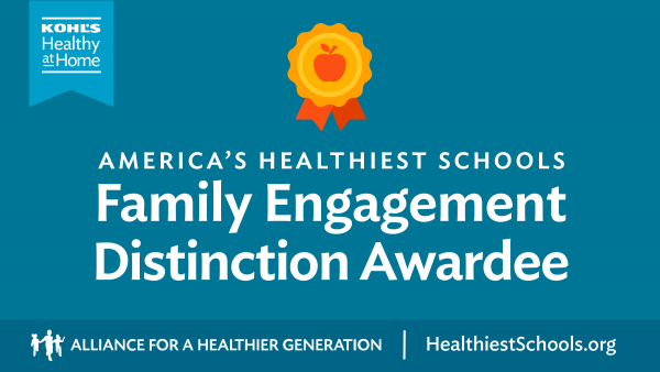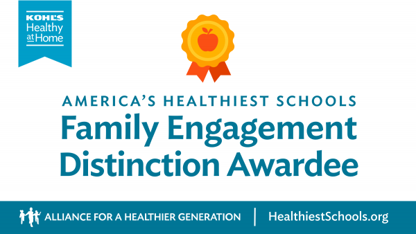Our school has been awarded the Alliance for a Healthier Generation’s Family Engagement Distinction, presented by Kohl's Healthy at Home, for our commitment to engaging families in nutrition, physical activity, & well-being practices. Learn more at www.HealthiestSchools.org.