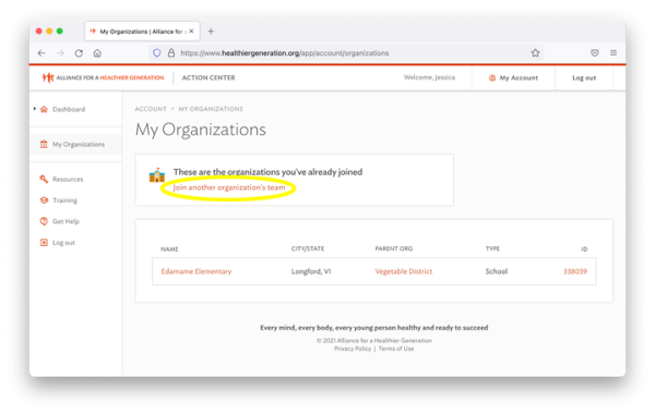 - Note: If you already joined an organization, click the Join another organization link on the My Organizations tab.