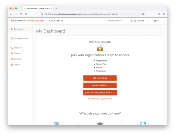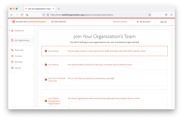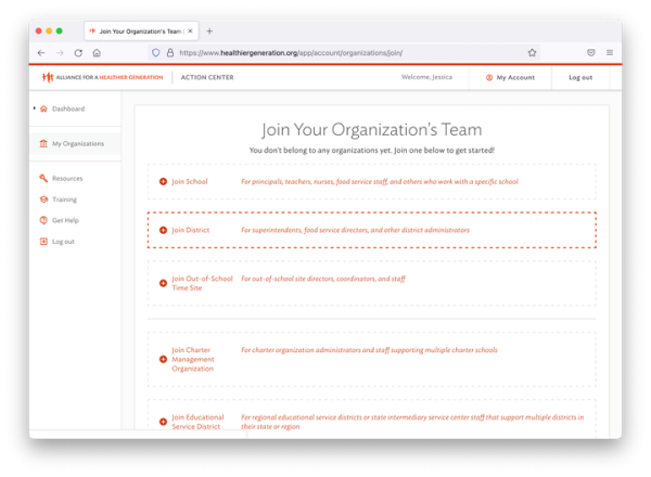 - If you haven't joined an organization, click the type of organization you would like to join button.