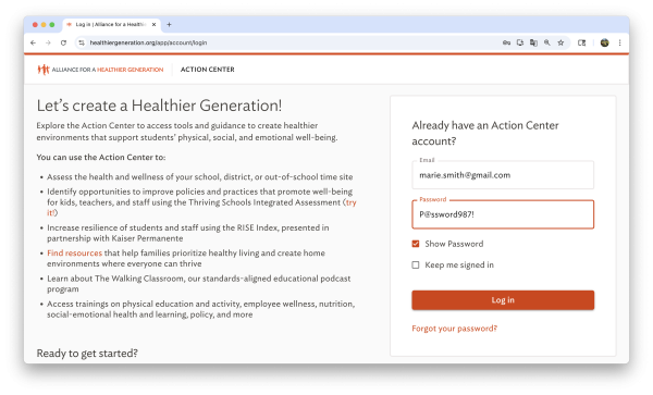 - Go to https://www.healthiergeneration.org/app/account/login